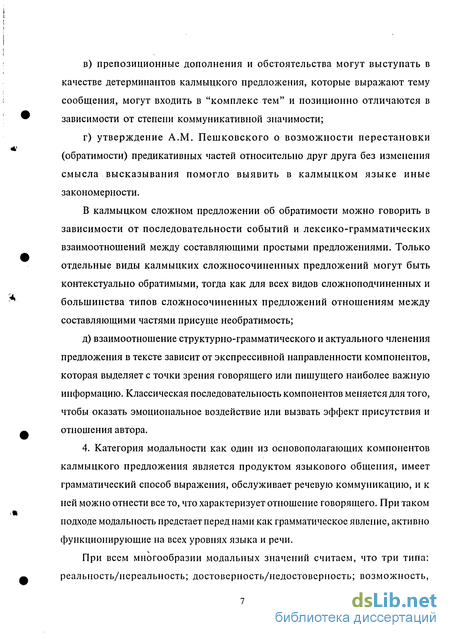 4. Категория модальности как один из основополагающих компонентов калмыцкого предложения является продуктом языкового общения, имеет грамматический способ выражения, обслуживает речевую коммуникацию, и к ней можно отнести все то, что характеризует отношение говорящего. При таком подходе модальность предстает перед нами как грамматическое явление, активно функционирующие на всех уровнях языка и речи.