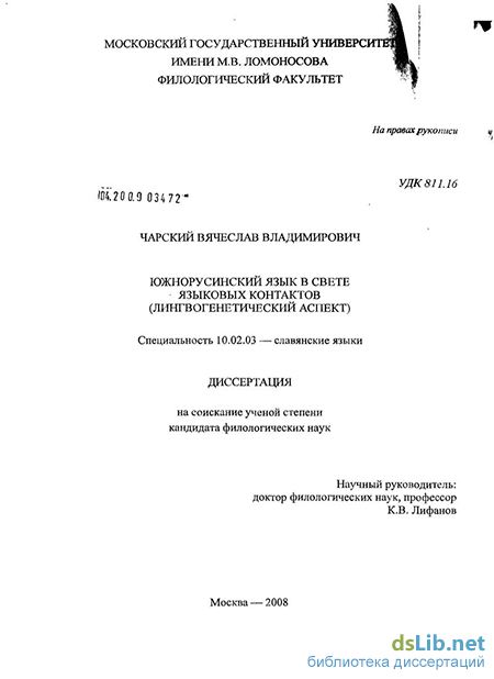 Глава вторая Теория и методика исследования южнорусинского языка в свете генетической контактологии 43