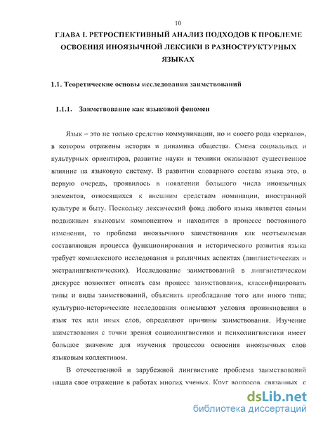 1.1.1. Заимствование как языковой феномен 10-16