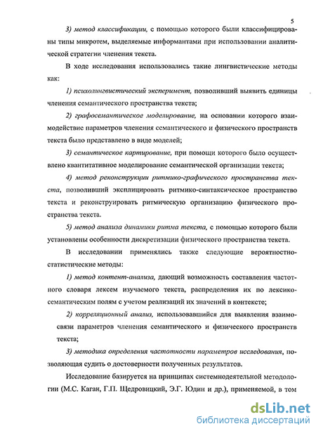 4. Единицы физического пространства текста оказывают влияние на членение семантического пространства текста. Дискретизация семантического пространства текста производится на трех уровнях представления текста: самого текста как семантического образования; вида деятельности (аналитической / синтетической / смешанной стратегий членения семантического пространства текста); соответствия с членением физического пространства текста.