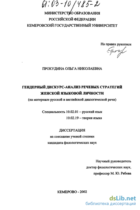 Цель исследования - на основе гендерного анализа женских моделей речевого поведения установить некоторые характерные дискурсные тенденции женской диалогической речи в русском и английском языках.