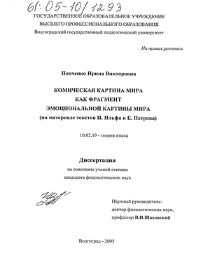 Предметом исследования выступает комическая картина мира в текстах И. Ильфа и Е. Петрова как фрагмент их эмоциональной картины мира.