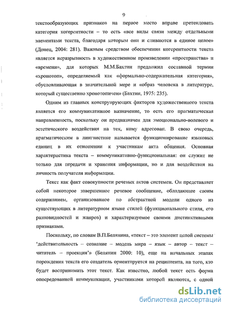 Данная диссертационная работа посвящена исследованию коммуникативно-прагматического аспекта художественного текста.