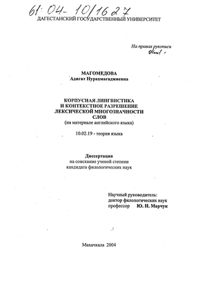 Все это требует особого осмысления. В данной диссертации мы пытаемся сформулировать предмет, объект и методы современной корпусной лингвистики.