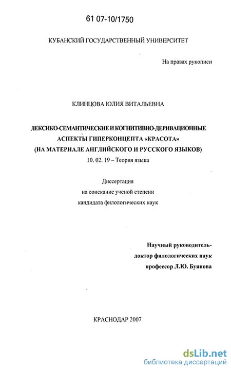 Предметом диссертационного исследования выступают лексико-семантические, когнитивные, словообразовательные и прагматические аспекты формирования и реализации этико-эстетического гиперконцента «Красота» в английском и русском языках