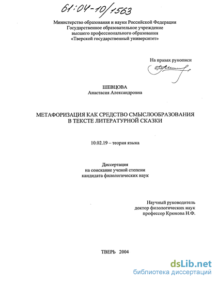 Гипотеза настоящего исследования заключается в следующем: специфика литературной- сказки как жанра обусловлена смыслопорождающими возможностями и особенностями функционирования различных средств метафоризации, являющихся в литературной сказке основой формирования художественности текста и определяющей сказочность как его интегрирующий жанрообразующий признак.