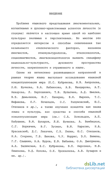 Одним из интенсивно развивающихся направлений в рамках теории языка выступает исследование языковой концептуализации мира (Е.С. Кубрякова, Н.В. Антропова, Л.Ю. Буянова, В. А. Рыбникова, А.В. Жандарова, А.Т. Ашхарова, Л. Бартошевич, Т. В. Булыгина, А. Д. Шмелев, В.З. Демьянков, Ю.Г. Панкрац, В.Я. Мыркин, Т. С. Нифанова, О.Г. Почепцов, О.С. Разумовский, Ю.С. Степанов и др.), а также изучение концепта как знака языка и культуры, как средства и способа языковой концептуализации мира (см.: С.А. Аскольдов, А.П. Бабушкин, В.М. Бухаров, Л.Ю. Буянова, А. Вежбицкая, С.Г. Воркачев, В.Г. Зусман, В.И. Карасик, Н.А. Красавский, Д.С. Лихачев, С.Х. Ляпин, Ю.С. Степанов, И.А. Стернин, Г.В. Быкова, Ч.У. Моррис, З.Х. Бижева, Г.Г. Слышкин, А.А. Буров, Е.В. Бабаева, О.А. Дмитриева, А.А. Залевская, Е.С. Кубрякова, В.П. Нерознак, М.В. Пименова, З.Д. Попова, O.K. Прохвачева, А.В. Пузырев и мн. др.).