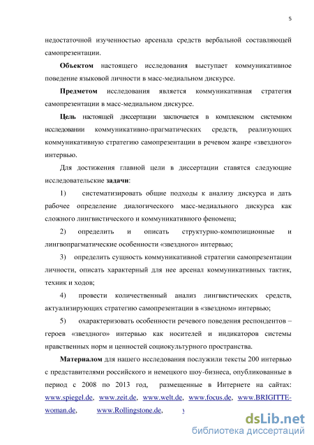 В данном диссертационном исследовании предпринят анализ особенностей речевого поведения представителей шоу-бизнеса в дискурсе «звездного» интервью.