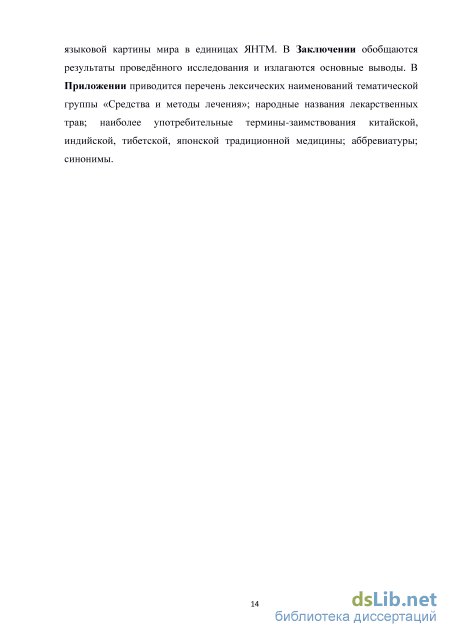 В результате проведённого исследования выявлено, что для языка народной медицины характерно использование русскоязычных наименований, а для традиционной медицины, как правило, - заимствований из китайского и индийского языков. При этом процесс заимствования сопровождается как нулевой, так и частичной транссемантизацией. В языке традиционной медицины отмечается меньшее количество мотивированных наименований. Объясняется это тем, что традиционная медицина зарождалась и активно развивалась в Древнем Китае, Древней Индии и Тибете. Именно в странах Востока она наиболее эффективна и в настоящее время, являясь неотъемлемой частью медицинской культурной традиции этих стран. Наблюдаемая в современном мире глобальная тенденция к унификации культур обусловливает процесс заимствования слов из других языков (в данном случае из восточных). Вместе с тем на современном этапе развития народной и традиционной медицины проявляется тенденция заимствований греко-латинских терминоэлементов, функционирования гибридных наименований.