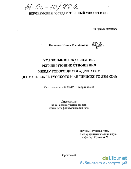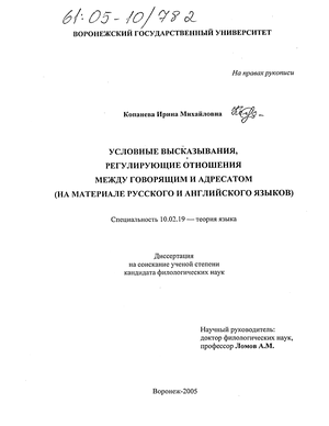 Предметом исследования в настоящей работе являются русские и английские условные высказывания, регулирующие межличностные отношения участников речевого общения: говорящего (меня / нас), с одной стороны, и адресата (тебя / вас) — с другой, то есть высказывания типа «если я / мы (я и другие), то ты / вы (ты и другие)» и «если ты / вы (ты и другие), то я / мы (я и другие)»: Если я не смогу дозвониться, тебе придется туда съездить; Если ты любишь спать повыше, я могу принести вторую подушку; But if you persist in this obnoxious behavior, ГП throw you the hell out; You wouldn V believe me even if I told you.