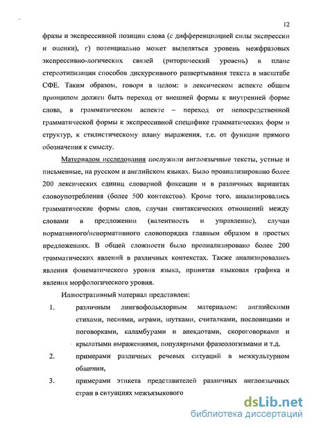Для решения поставленных задач использовались следующие методы исследования. Принцип системного подхода к многосложному объекту необходимым образом требует сочетания различных общенаучных, общих и частных лингвистических методов. В качестве основного в работе использовался сопоставительный метод, который получил в работе широкое применение в силу теоретической направленности работы. Так, в частности, проводилось лингвокультурное сопоставление, структурное сопоставление. При исследовании языковых фактов различных уровней использовались методы контекстного, компонентного, структурного грамматического и, частично, фонетического анализа.