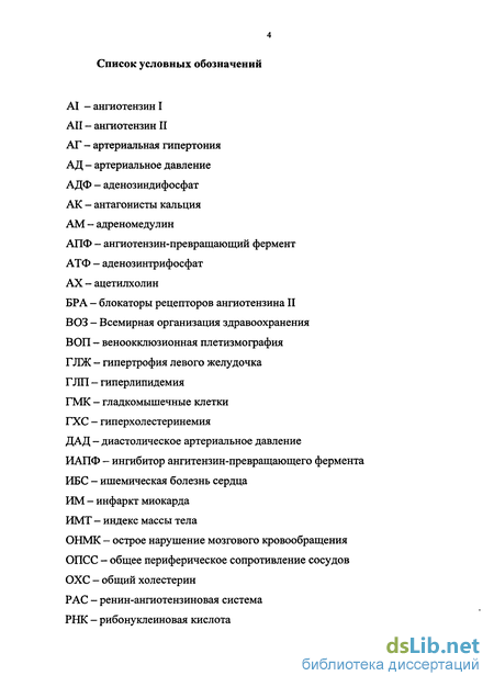 Список условных обозначений 4