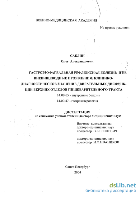 Автор лично участвовал в обследовании, динамическом наблюдении и лечении 883 больных гастроэзофагеальной рефлкжсной болезнью. Непосредственно автором проводилось клиническое обследование больных, исследование внутрижелудочной кислотности, внутрипищеводного рН, моторики верхних отделов пищеварительного тракта методами баллонной манометрии, электрогастроинтестинографии, внутриполостной импедансометрии, исследование метаболизма оксида азота (определение содержания нитритов в плазме крови, выделение нитрит-аниона с мочой), моторики билиарной системы методом 5-фракционного дуоденального зондирования и статистический анализ полученных данных.