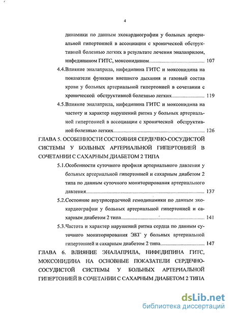У больных АГ в сочетании с СД 2 типа в сравнительном аспекте исследована эффективность ингибитора АПФ эналаприла, антагониста кальция ни-федипина ГИТС и агониста имидазолиновых рецепторов моксонидина в коррекции АГ, изменений внутрисердечной гемодинамики, в том числе диастолической дисфункции желудочков сердца, нарушений ритма сердца.
