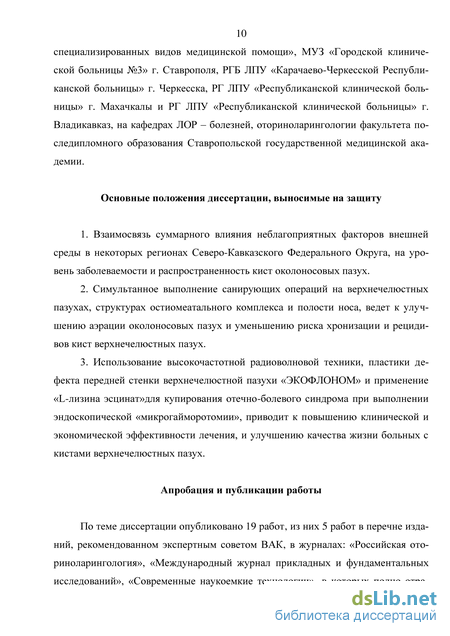8 ванных видов медицинской помощи», РГБ ЛПУ «Карачаево-Черкесской Республиканской больницы» г. Черкесска, РГБ ЛПУ «Республиканской клинической больницы» г. Махачкалы и РГБ ЛПУ «Республиканской клинической больницы» г. Владикавказ, на кафедрах ЛОР-болезней, факультета последипломного образования Ставропольской государственной медицинской академии.