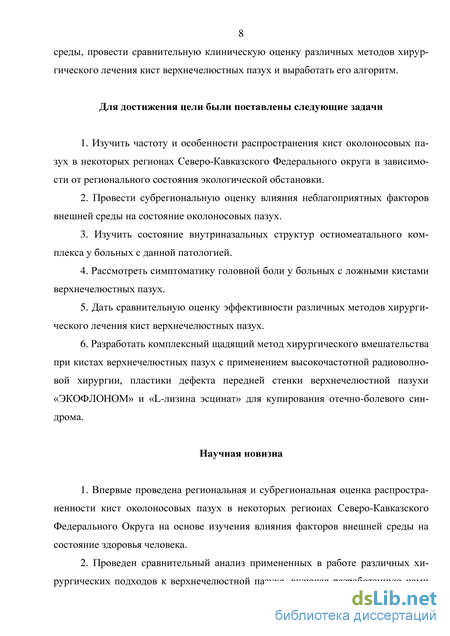 Впервые проведена региональная и субрегиональная оценка распространенности кист околоносовых пазух в некоторых регионах Северо-Кавказского Федерального Округа на основе изучения влияния факторов внешней среды на состояние здоровья человека.