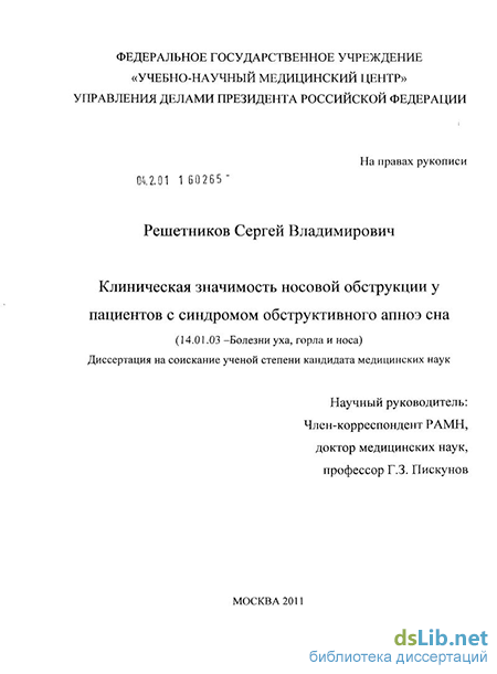 Цель исследования: совершенствование методов диагностики и лечения пациентов с синдромом обструктивного апноэ сна и носовой обструкцией с помощью разработки и применения фармакологической пробы с сосудосуживающим интраназальным препаратом.