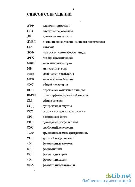 В последнее десятилетие в генезе хронического пиелонефрита и уролитиаза важное значение придается мембранопатологическим процессам. По данным Н.В. Сыромятниковой (1987), Г.Б. Федосеева (1997), J. Heffher (1989), важнейшими механизмами, которые приводят к дестабилизации клеточных мембран и нарушению регуляции клеточного гомеостаза, являются процессы перекисного окисления липидов, избыточная активность эндогенных и экзогенных фосфолипаз, недостаточность антиоксидантной защиты и др.