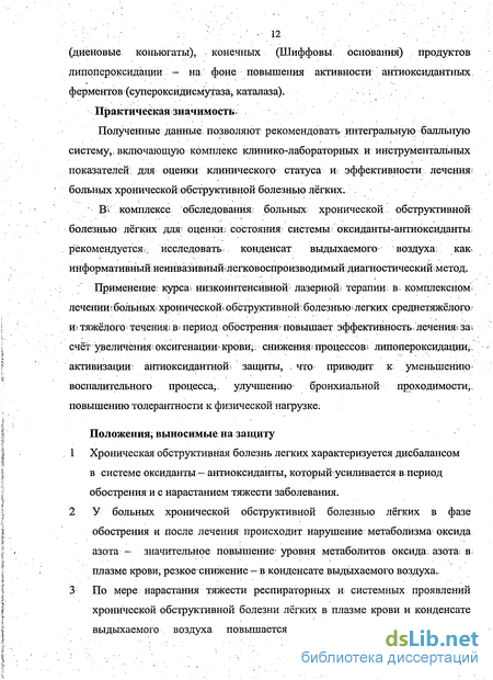 BV комплексе обследования; больных хронической обструктивной болезнью лёгких для оценки; состояния системы оксиданты-антиоксиданты, рекомендуется, исследовать, конденсат выдыхаемого воздуха как. информативньганеинвазйвныйшегковоспроизводимыйдиагностическийметод. Применение: курсам низкоинтенсивной; лазерной; терапии в. комплексном; леченишбольных хронической* обструктивной болезнью-легких среднетяжёлого ш тяжёлого течения!в*период обострения-повышает эффективность* лечения»за* счёт увеличения? оксигенациикровщ; снижения? процессов; липопероксидации,. активизации антиоксидантнот защиты, . что приводит к уменьшению воспалительного процесса;, улучшению бронхиальной проходимости;, повышению толерантности к физической нагрузке:
