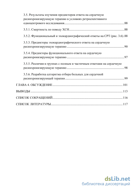 3.5.3. Предикторы эхокардиографического ответа на сердечную ресинхронизирующую терапию 90