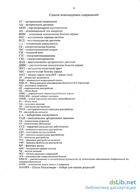 Несмотря на большое число исследований, выполненных с применением современных клинико-диагностических и эпидемических методов, приводимые в литературе данные, как правило, не позволяют полностью решить целый ряд клинических аспектов особенностей психических расстройств в кардиологии. По данным литературы, имеющиеся психосоматические исследования носят, как правило, выраженный «срезовый» характер. Лонгитюди-нальных работ по этой тематике выполнено сравнительно мало. Многие важные аспекты проблемы распространения депрессий получили явно недостаточное научное осмысление, а в литературе практически отсутствуют данные о массовых исследованиях этой проблемы в конкретных регионах России. АГ традиционно относят к группе «классических» психосоматических заболеваний, однако значение таких психологических факторов как алекситимия и тревога в ее развитии изучено недостаточно, что в определенной степени отражается на эффективности ее терапии и профилактики.