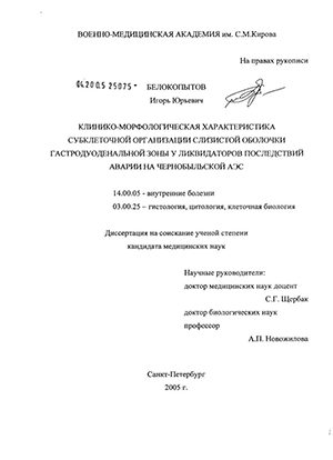 В работе впервые с клинических позиции провелено изучение ультрастрхк-турного состояния слизистой оболочки жел\дка и двенадцатиперстной кишки \ ликвидаторов последствий аварии на Чернобыльской АЭС, включая оценк\ межклеточных взаимодействий в ней, а также гомсостатическнх рег)дяторлых влияний.