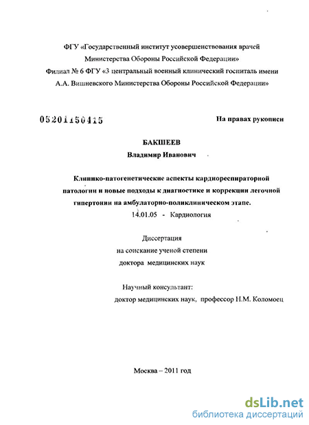Выводы, практические рекомендации настоящей диссертации, модифицированный протокол ультразвукового исследования правых отделов сердца, образовательная программа для больных с кардиореспираторной патологией реализуются в поликлиниках филиала № 6 ФГУ «3 ЦВКГ им. А.А.Вишневского» (ул. Маршала Бирюзова д. 39; Скаковая ул., д. 16), в филиале № 6 ФГУ «3 ЦВКГ им. А.А.Вишневского».