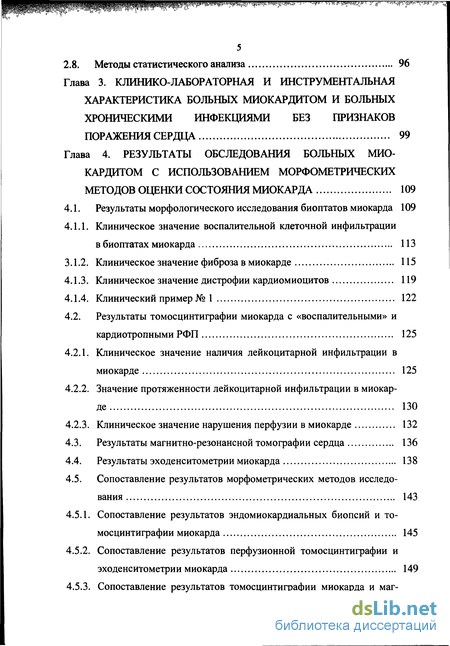 Показана информативность комплекса методов диагностики миокардита при различных диагностических возможностях кардиологического стационара, а также информативность морфометрических методов и их взаимозаменяемость.
