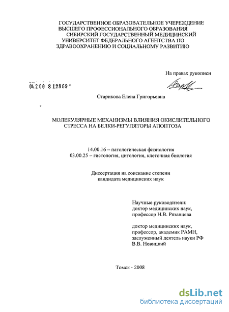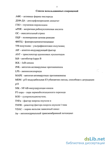 B.Y. et al., 2001; Haddad J., 2002]. Измененные в результате воздействия АФК молекулы являются «сигналами», несущими биологическую информацию, необходимую для регуляции различных клеточных функций, в частности, апоптоза [Sorescu D., 2001; Safa О., 2001; Октябрьский О.Н., Смирнова Г.В., 2007].