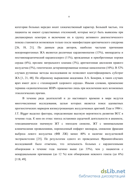 За последние полвека прогресс в области аритмологии привел не только к пониманию механизмов аритмий и разработке большого числа антиаритмических препаратов, но и к непосредственной топической диагностике, интервенционному и хирургическому лечению нарушений ритма сердца. Сложный путь от регистрации ЭКГ у пациента с нарушениями ритма до интраоперационного картирования и воздействия на источник аритмии был пройден благодаря непрерывным исследованиям специалистов всего мира. В нашей стране приоритет в изучении электрофизиологических механизмов тахиаритмий, разработке методов их диагностики и хирургического лечения принадлежит академику Л.А. Бокерия, которого по праву можно назвать основателем нового направления в кардиохирургии – хирургической аритмологии. Им впервые в нашей стране выполнены операции криодеструкции аритмогенных зон при желудочковых аритмиях, разработаны и внедрены в клиническую практику методики эндокардиальной резекции у больных ИБС в сочетании с жизнеугрожающими желудочковыми аритмиями. Академик Л.А. Бокерия также внес большой вклад в изучение некоронарогенных желудочковых аритмий, поиск эффективных методов их хирургического и интервенционного лечения. Впервые в СССР, в 1986 г. Л.А. Бокерия выполнил операцию аутотрансплантации сердца при синдроме удлиненного интервала QT и ЖТ, а в 1990 г. – первую в России имплантацию кардиовертера-дефибриллятора. Большой вклад в развитие отечественной аритмологии внесли ученики Л.А. Бокерия – академик А.Ш. Ревишвили и член-корр. РАН Голухова Е.З. Первые в нашей стране описания аритмогенной дисплазии правого желудочка представлены в диссертационном исследовании профессора Голуховой Е.З. (1988 г.), выполненном под руководством академика Л.А. Бокерия. К заслугам Е.З. Голуховой также следует отнести изучение проблемы ВСС и разработку неинвазивных методов диагностики ЖА. Школа академика Л.А. Бокерия в области исследования ЖНР представлена многочисленными работами его учеников (Е.З. Голухова. А.Ш. Ревишвили, И.П. Полякова, О.Л. Бокерия, Н.М. Неминущий, Г.Г. Федоров, К.В. Шумков, М.В. Носкова, Е.А. Артюхина, И.В. Проничева, М.Г. Адамян, О.И. Громова, А.И. Кулямин, В.В. Чернышов и др.). Наша диссертационная работа явилась попыткой продолжить исследования в данной области аритмологии.