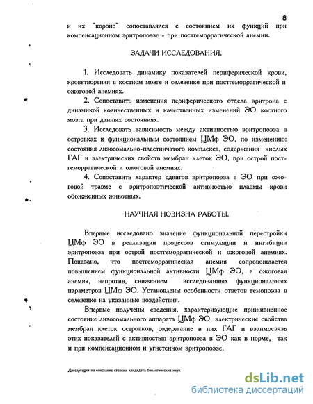 Диссертация на соискание степени кандидата биологических наук Страница № 6 механизмы развития анемии, сопровождающей ожоговую болезнь.