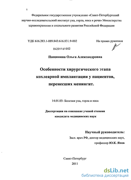 При этом одной из частых причин приобретенной сенсоневральной тугоухости является бактериальный менингит (Gantz В., 2005; Klein М., 2008; Klein М., 2007; Wellman М., 2003). По данным различных авторов потеря слуха после перенесенного гнойного менингита встречается в 6 - 37 %, а полная глухота приблизительно в 5% случаев (Merchant S., Gopen Q.,1996). Соответственно, по данным литературы, до 60 - 90% глухоты, приобретенной после овладения речью, связаны с бактериальным менингитом (Kulahi L, 1997). У 80 % пациентов, перенесших бактериальный гнойный менингит, потеря слуха сопровождается оссификацией структур внутреннего уха (Steenerson R.,1994), что вызывает постоянное расширение показаний к проведению КИ.