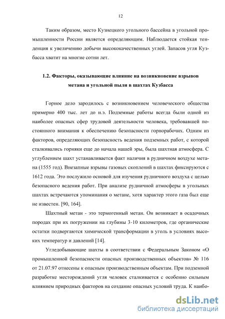 1.2. Факторы, оказывающие влияние на возникновение взрывов газа метана и угольной пыли в шахтах Кузбасса 12