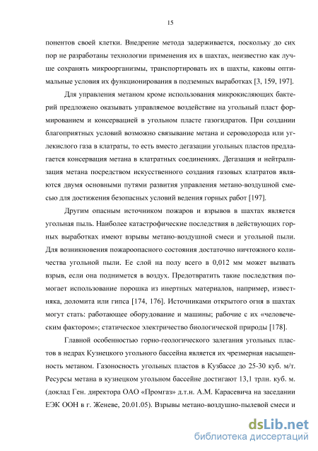 Угледобывающие шахты в соответствии с Федеральным Законом «О промышленной безопасности опасных производственных объектов» № 116 от 21.07.97 отнесены к опасным производственным объектам. При подземной разработке месторождений угля человек сталкивается с особенно сильным влиянием природных факторов на создание опасных условий труда. К наиболее опасным производственным факторам относится выделение метана из массива в образуемое в результате выемки угля и породы пространство и формирование взрывоопасной смеси при взаимодействии с шахтным воздухом, а так же самовозгорание угля [84].