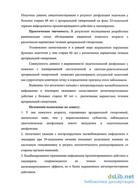 Выявлено, что антагонист кальция с контролируемым высвобождением нифедипина и эналаприл оказывают сопоставимое антигипертензивное действие у больных старше 60 лет с различными вариантами течения артериальной гипертонии.