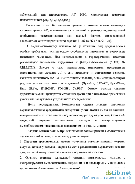нифедипина и эналаприлом у больных старше 60 лет с различными