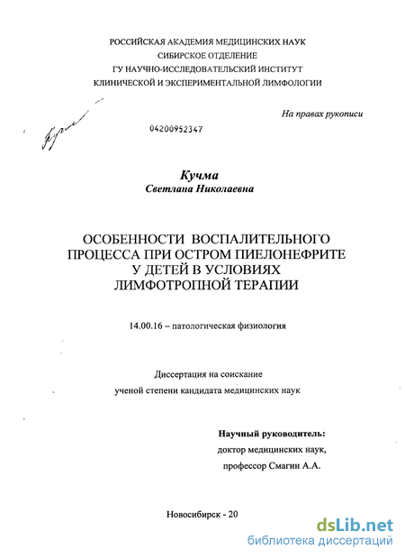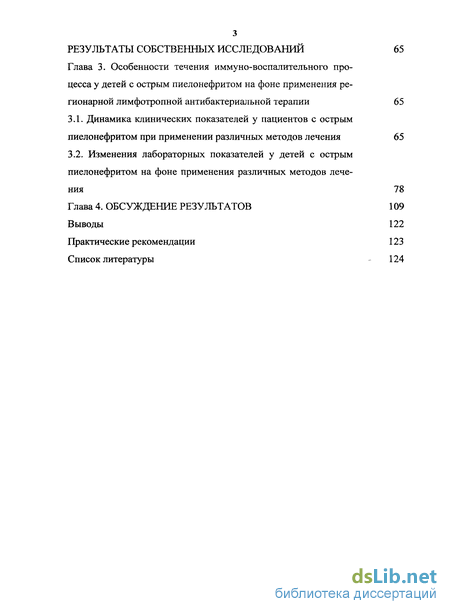 Глава 3. Особенности течения иммуно-воспалительного процесса у детей с острым пиелонефритом на фоне применения регионарной лимфотропной антибактериальной терапии 65