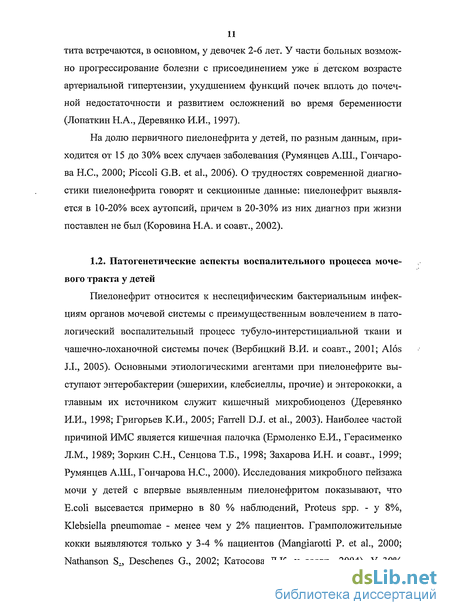 1.2. Патогенетические аспекты воспалительного процесса мочевого тракта у детей 11