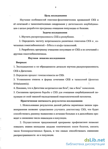 Изучение особенностей генетико-фенотипических проявлений СКБ и её сочетаний с талассемическими синдромами у дагестанских азербайджанцев с целью разработки программы очищения популяции от болезни.