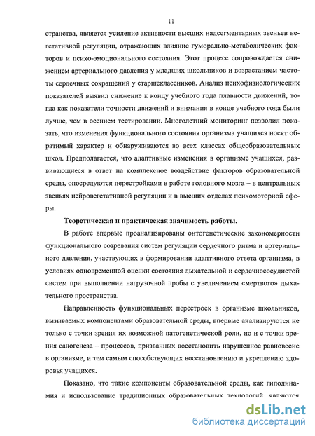 Направленность функциональных перестроек в организме школьников, вызываемых компонентами образовательной среды, впервые анализируются не только с точки зрения их возможной патогенетической роли, но и с точки зрения саногенеза - процессов, призванных восстановить нарушенное равновесие в организме, и тем самым способствующих восстановлению и укреплению здоровья учащихся.