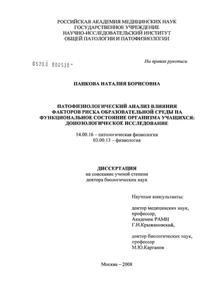 Используя принципы и методы патофизиологического исследования, выявить функциональную направленность физиологических сдвигов в организме учащихся, вызываемых влиянием образовательной среды и ее отдельных компонентов.