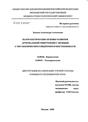 Публикации. По теме диссертации опубликовано 5 работ. Внедрение в практику. Результаты исследования внедрены в практику работы терапевтических, кардиологического и эндокринологического отделения городской клинической больницы № 70 г. Москвы
