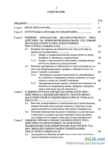 Глава 4 Влияние препаратов метаболического типа действия на липидный обмена тканей двенадцатиперстной и тощей кишки при остром панкреатите
