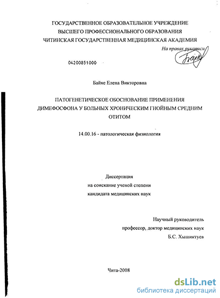 Приоритетным в работе явилось пагогенетическое обоснование применения димефосфона в комплекснон терапии больных с хроническим гнойным средним отитом Данный препарат, независимо от способа его введения, в большей степени повышает антиоксидантний потенциал слизистой оболочки барабанной полости и уменьшает уровень ТБК-активных продуктов по сравнению с традиционной терапией Снижающий эффект на уровень короткоцспочечных жирных кислот оказывает местное использование димефосфона Клиническая эффективность (купирование гноетечения, і иперемни, инфильтрации гканеи барабанной полости за короткий промежуток времени), наблюдаемая при местном применении димефосфона, подтверждает антиоксидант-ные свойства дашюі о препарата