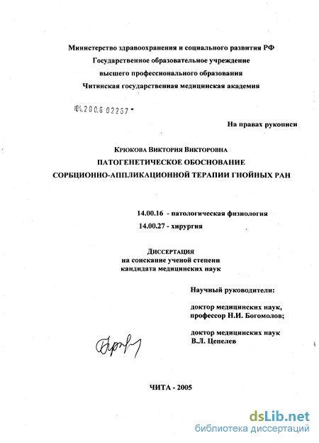 С этих позиций несомненные преимущества имеют методы сорбционно-аппликационной терапии, направленные на скорейшее очищение ран от микроорганизмов и продуктов их жизнедеятельности, а также некротических тканей [10, 23, 56, 135, 151, 160, 171]. Перспективным направлением повышения эффективности сорбционной терапии является разработка комбинированных лекарственных форм, состав которых патогенетически обоснован с учетом фазы раневого процесса [61, 154, 243, 303]. В связи со сказанным, поиск новых эффективных средств и способов лечения гнойных ран является актуальной проблемой современной медицины. Изложенные факты и значимость проблемы предопределили настоящее исследование.