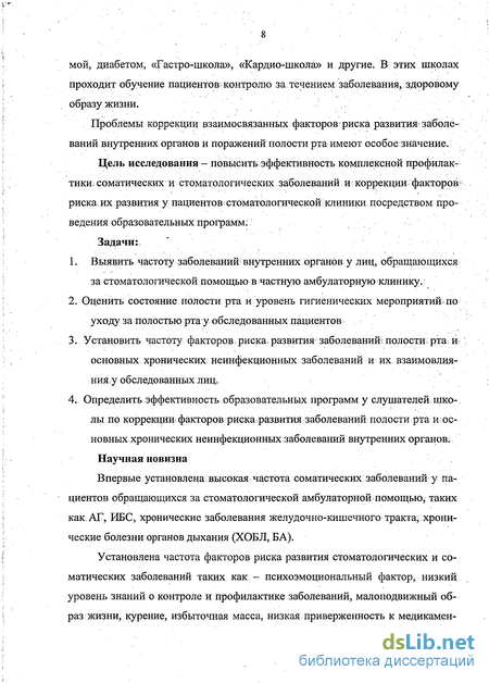 лы по коррекции факторов риска- развития заболеваний полости рта и основных хронических неинфекционных заболеваний внутренних органов: Научная новизна