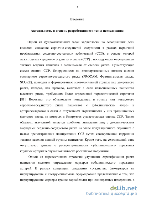 Фрамингемская шкала, SCORE), приводят к формированию многочисленной группы лиц умеренного риска, которая, как правило, включает в себя недооцененных пациентов высокого риска, требующих более агрессивной терапевтической стратегии (Sehestedt T. et al., 2010). Вероятно, это обусловлено попаданием в группу лиц невысокого сердечно-сосудистого риска пациентов с субклиническим атеро- и артериосклерозом в связи с отсутствием выраженности у них традиционных факторов риска, на которых и базируется существующая оценка сердечно-сосудистого риска. Таким образом, актуальной является проблема выявления лиц с доклиническими маркерами сердечно-сосудистого риска на этапе популяционного скрининга с целью предотвращения манифестации ССЗ путем своевременной коррекции тактики ведения данной группы пациентов.