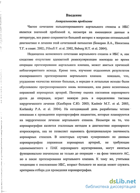 Частое сочетание кальцинированного аортального стеноза и ИБС является значимой проблемой и, несмотря на имеющиеся данные в литературе, все равно сохраняется большой интерес к вопросам оптимальной диагностики и лечения этой сочетанной патологии (Бокерия Л.А., Никитина Т.Г. и соавт. 2002.; Filsufi F. et al. 2002, Baberg H.T. et al. 2004).