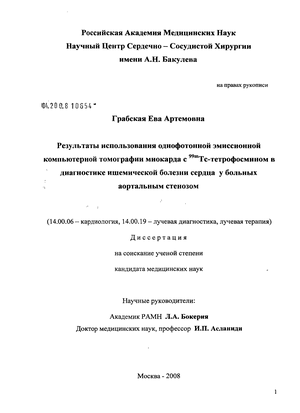 Таким образом, определение степени надежности однофотонной эмиссионной компьютерной томографии миокарда с 99тТс-тетрофосмином в неинвазивной диагностике ИБС у пациентов с аортальным стенозом является чрезвычайно актуальной проблемой. (Бокерия Л.А., Никитина Т.Г., Асланиди И.П. и соавт. 2002, Van Tosh А. 2002; Patsilinakos S. P. et al. 2004).
