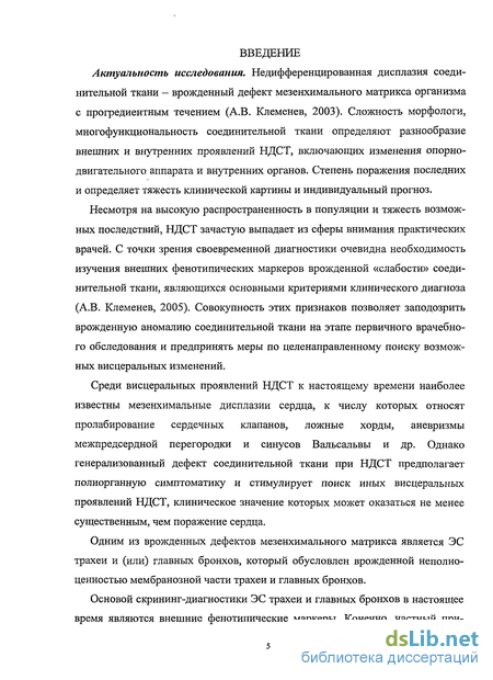 Актуальность исследования. Недифференцированная дисплазия соединительной ткани - врожденный дефект мезенхимального матрикса организма с прогредиентным течением (А.В. Клеменев, 2003). Сложность морфологи, многофункциональность соединительной ткани определяют разнообразие внешних и внутренних проявлений НДСТ, включающих изменения опорно-двигательного аппарата и внутренних органов. Степень поражения последних и определяет тяжесть клинической картины и индивидуальный прогноз.